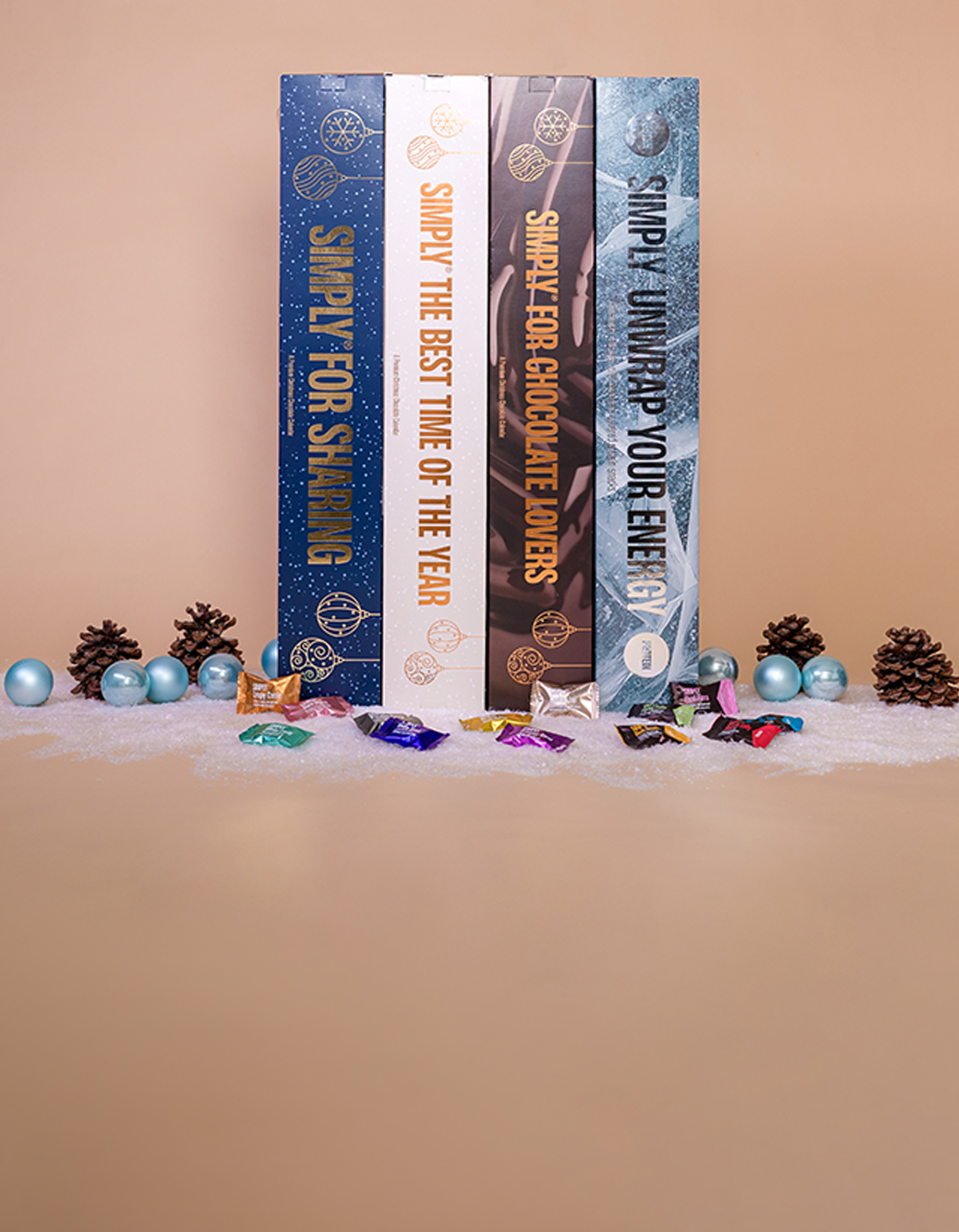 The chocolate from Simply® has both attitude and character, and you can be sure that it's produced with respect for both people and our planet. Treat yourself to our limited editions, where you'll find the unique among our temptations in glittering paper, visiting our regular assortment here and there. Our beautifully packaged chocolates are a true color spectacle, and the packaging speaks its clear language because the boxes from Simply® contain something truly extraordinary.