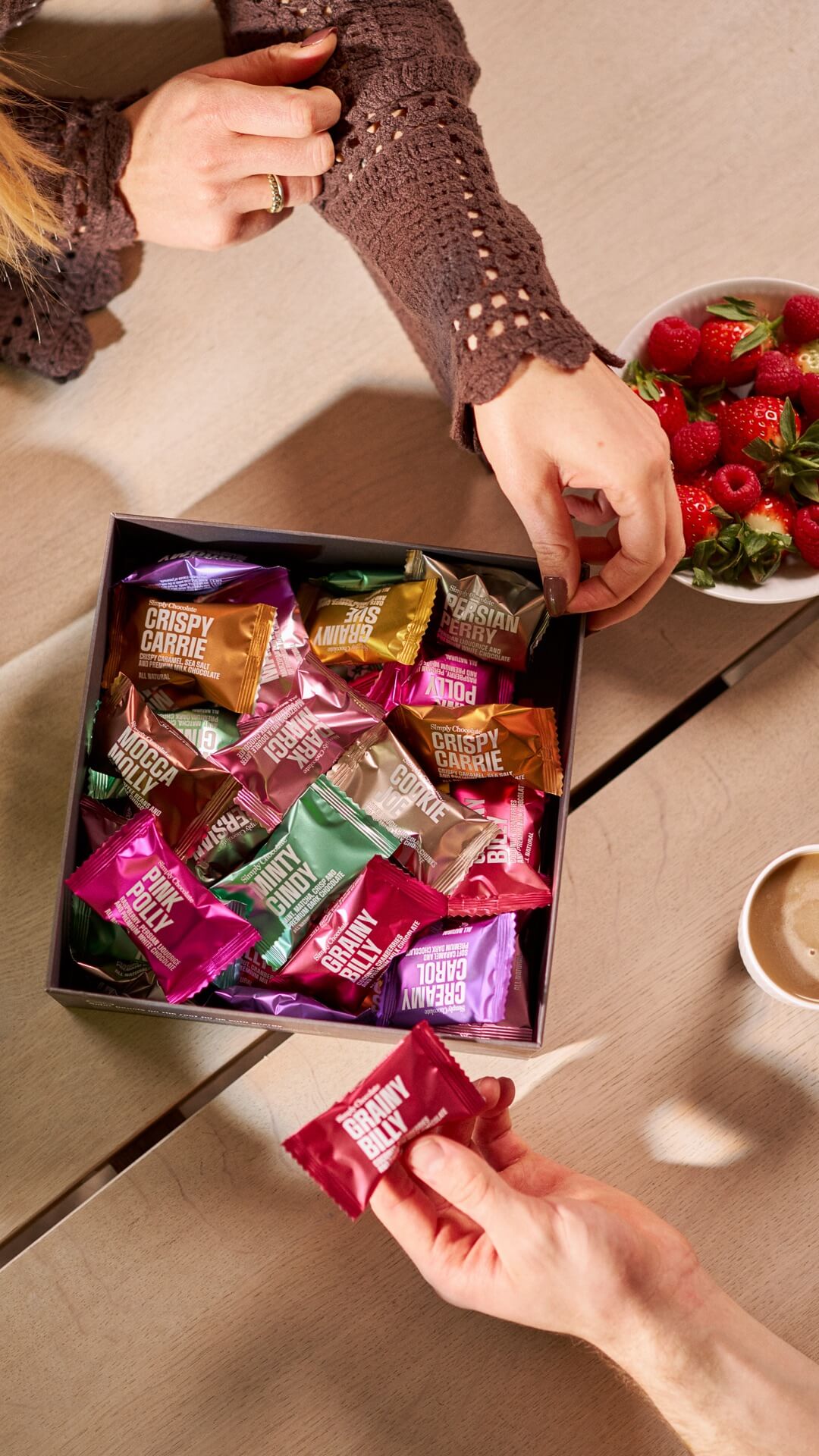 We also have a tempting range of premium chocolate bars for you to enjoy all to yourself. Whether you prefer filled chocolates with crunch and caramel or solid chocolate with sea salt and nuts, you'll undoubtedly find more than one variant in the shop that will make your mouth water. Mix and match your favorite chocolate bars and chocolate squares individually, or delve into exciting flavor explosions with our bar kits and assorted boxes of delectable mini chocolates in bites, where you can sink your teeth into all our exclusive flavor varieties with dark, milk, or white chocolate. Created with honest and genuine quality ingredients by Danish chocolatiers.