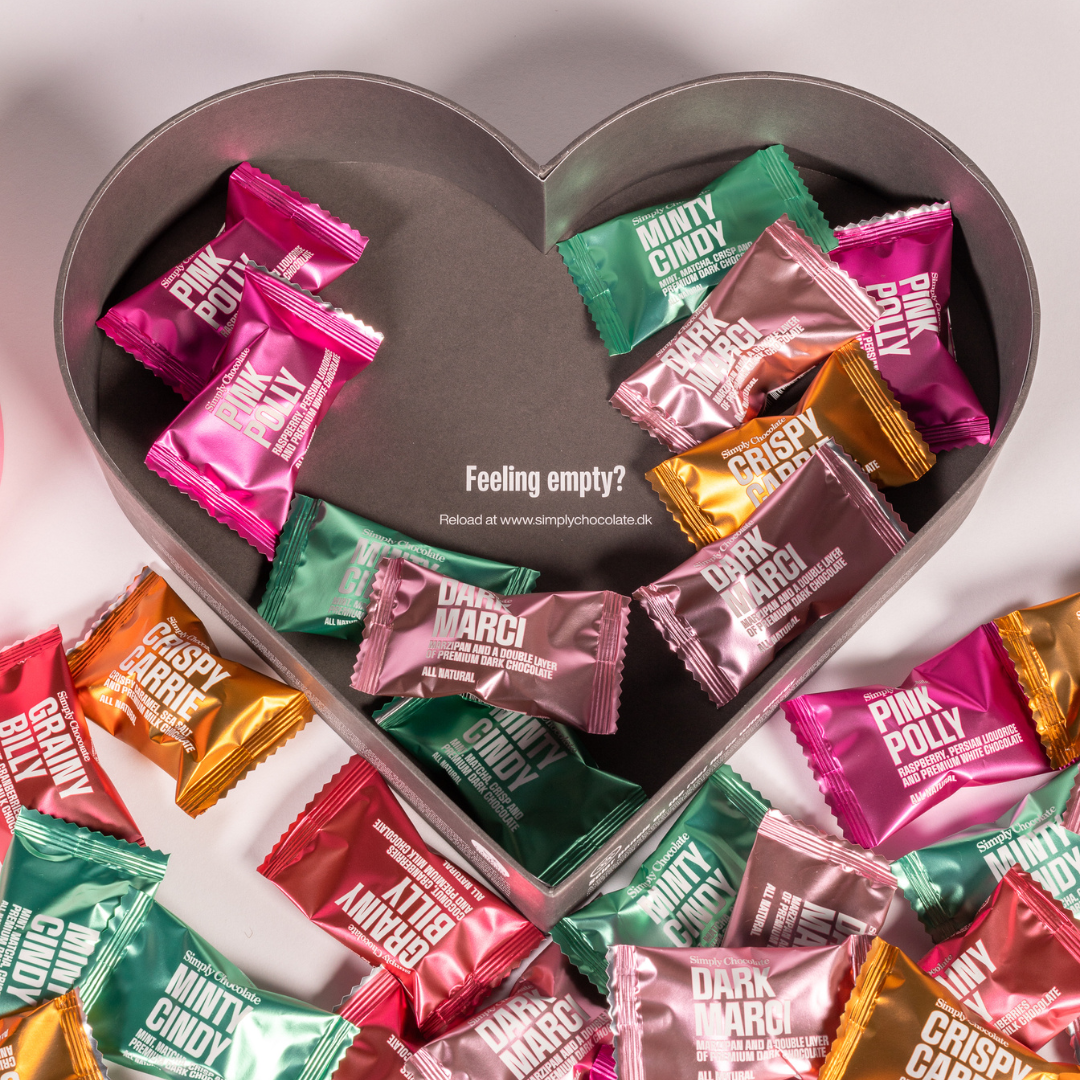 Chocolate in bites from Simply Chocolate are addictive flavor explosions in bite-sized pieces made exclusively from the very best ingredients and the finest premium chocolate. The mini chocolates from Simply Chocolate come in a large and wide selection, and we guarantee that among our many different bites, you will find a variant you can't get enough of. In fact, we dare to go a step further and promise that even the most critical chocolate lover will completely surrender to our delicate chocolate universe. Spoil someone you care about with the ultimate declaration of love - a box of chocolate bites from Simply Chocolate. Or give your guests a taste experience they will not soon forget by serving delicious small chocolates at your summer party, wedding, birthday, or after a lovely dinner where there is a need for a delicate and aesthetic treat. At Simply Chocolate, our mission is to fulfill your chocolate cravings, and therefore our boxes of chocolate in bites are available in several different sizes and varieties. Explore Simply Chocolate's official webshop, where you can see and shop all your favorite Simply Chocolate chocolate bars - both individually and in delicious bar kits. If your chocolate craving is for more, you should explore our exciting selection of shareable chocolate bars, exclusive gift boxes with chocolate, exciting limited editions, and flavorful protein bars with 100% natural ingredients.
