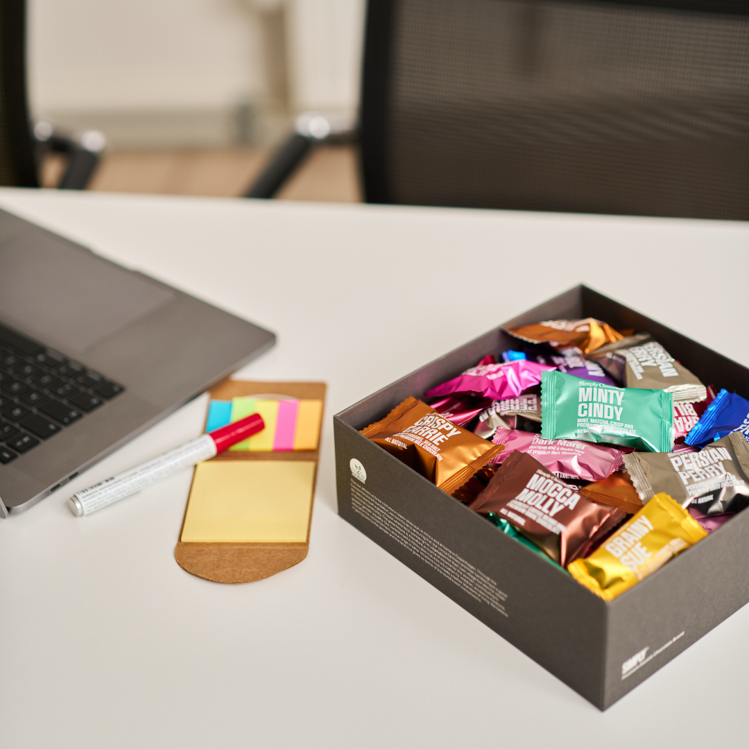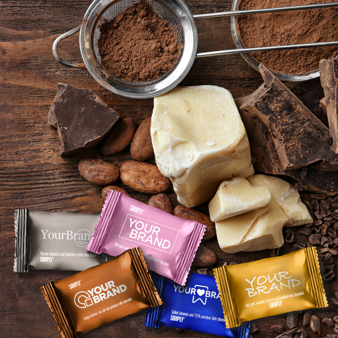Get your logo on our premium chocolate! Design your own chocolate with your brand colors, logo, and statements. We tailor the perfect solution for you. Register as a business customer to learn more.