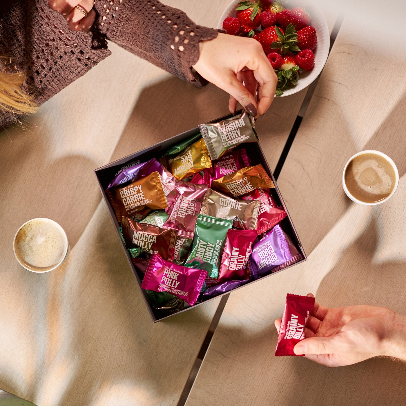 Explore our selection of tasty gift boxes, small chocolate bites for the meeting room, or keep your energy up with our natural protein bars.