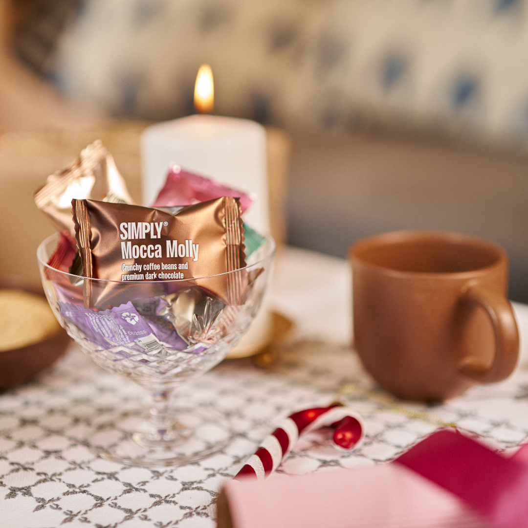 Hos Simply® elsker vi julen. Fabrikken fyldes med en magisk julestemning, og der spreder sig en helt særlig duft, når vores dygtige chocolatiers producerer årets julekollektion af naturlig chokolade. Gå på opdagelse i vores udvalg af premium chokolade i æstetiske gaveæsker - perfekt til sæsonens mange traditioner. Om end du er på udkig efter en værtindegave, en mandelgave eller måske bare et spiseligt julekort, så har vi chokoladen til dig.
