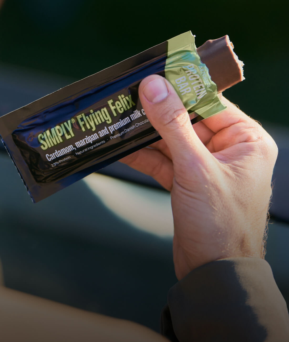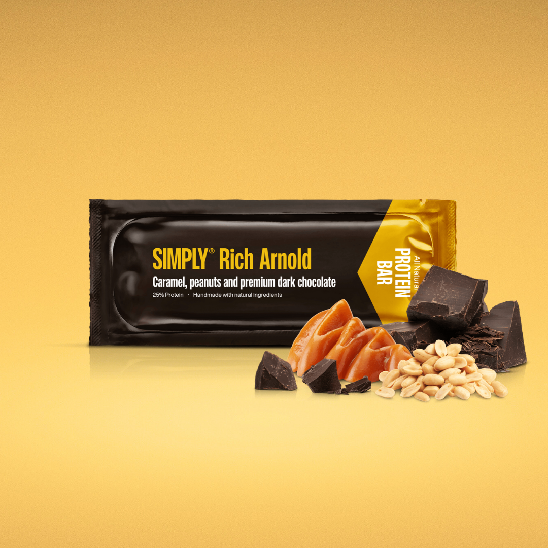 Behind a thick layer of premium dark chocolate, you'll find a core of peanuts, caramel, and sweet dates. Arnold is our bestseller - and we understand why. Enjoy 25% protein without compromising on the high quality and great taste.