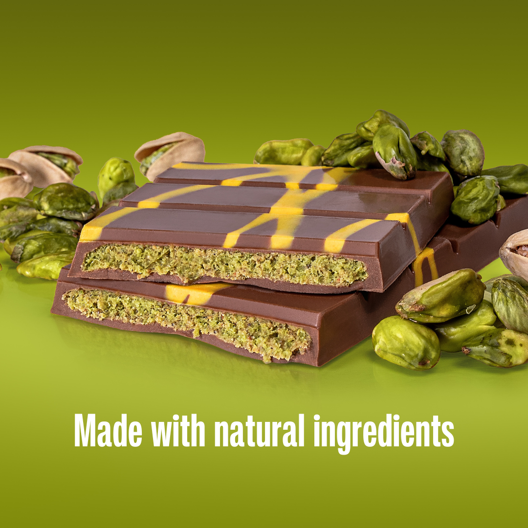 Natural by nature — it’s in Simply®’s DNA, and this luxurious taste experience is no exception. We never use artificial sweeteners, flavorings or colorings. That’s why the traditional kadayif has been swapped for a natural crunch that delivers the same irresistible contrast to the creamy pistachio. You’ll also notice it’s not neon green—but instead, the beautiful natural green shade of real pistachios. Tastes way better if you ask us 🤎