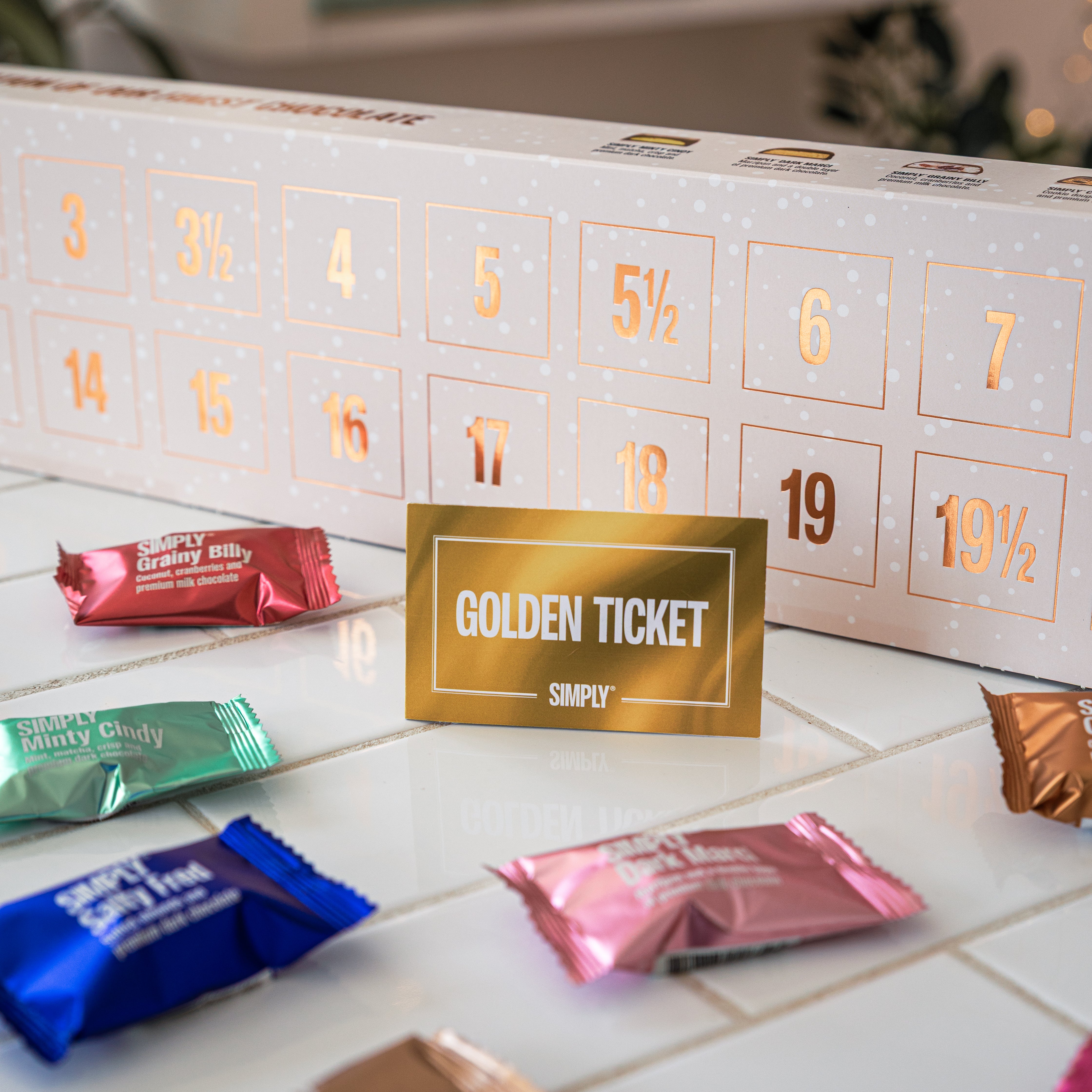 Have you noticed that all Simply® advent calendars include extra windows, like on the 3 1/2? We just think that 24 chocolates aren't quite enough to count down to Christmas, so we've added extra doors on select days where you can enjoy two chocolates without any guilt.